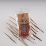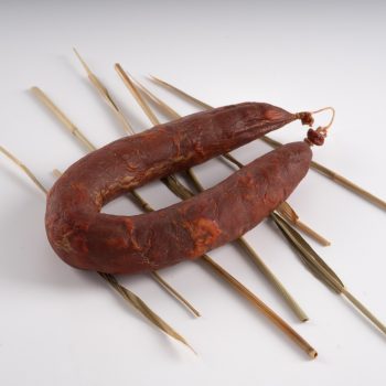 Ingredientes: Carne e gordura de suíno (Origem:UE); sal; pimentão doce; alho – contem sulfitos; açúcar; dextrina; dextrose; proteína de carne (suíno); oregãos; conservante: E250; tripa natural de vaca.